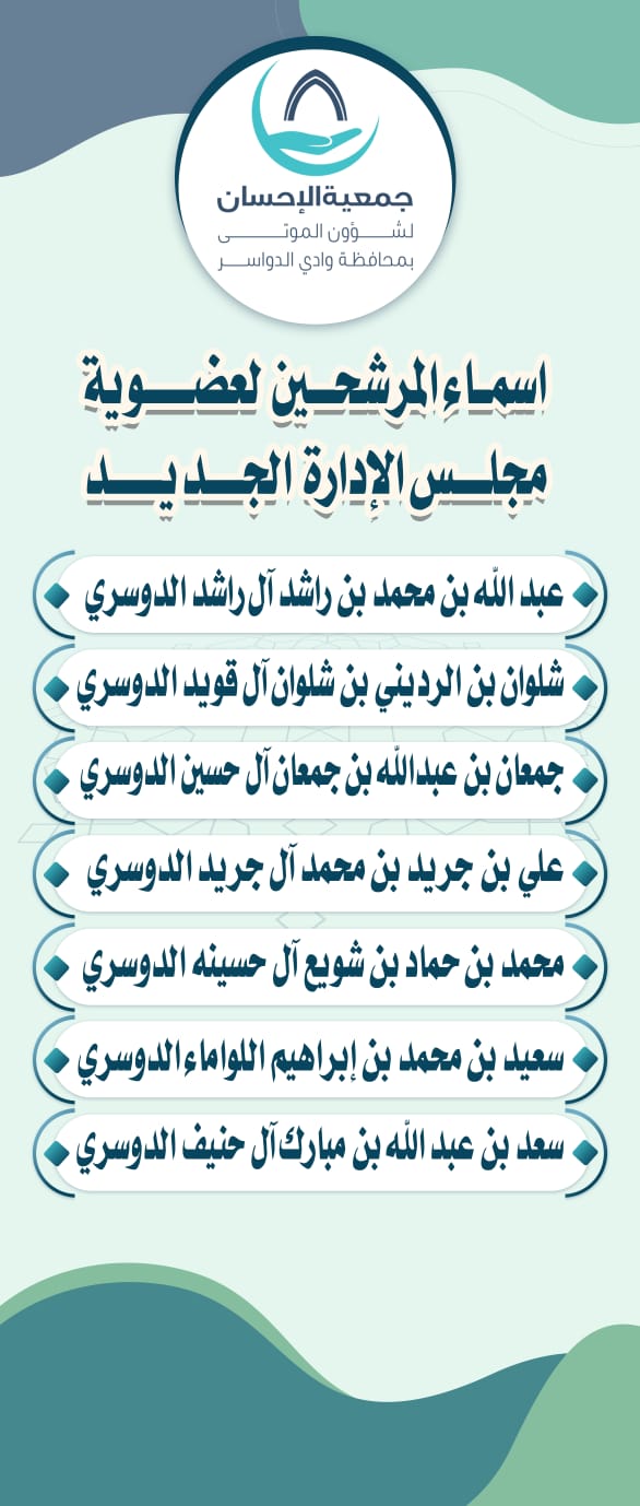 جاءت فكرة إنشاء أول جمعية أهلية في في محافظة وادي الدواسر متخصصة في العناية بشؤون الموتى ورعاية ذويهم وتقديم الدعم للمجتمع والأفراد في بيئة آمنة وخدمة مجتمعية مميزة؛ نظراً لتعظيم الإسلام لحرمة المسلم حياً وميتاً ولأهمية وجود كيان متخصص يلبي احتياجات شؤون الموتى ويخفف العبء عن ذويهـم بمحافظة وادي الدواسر.